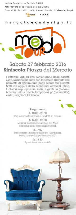 Si svolgerà sabato 27 febbraio, presso la sede della Pro Loco, “MED in Tour”. La giornata del Mercato Ecodesign farà tappa a Siniscola dalle 10.00 alle 20.00.
