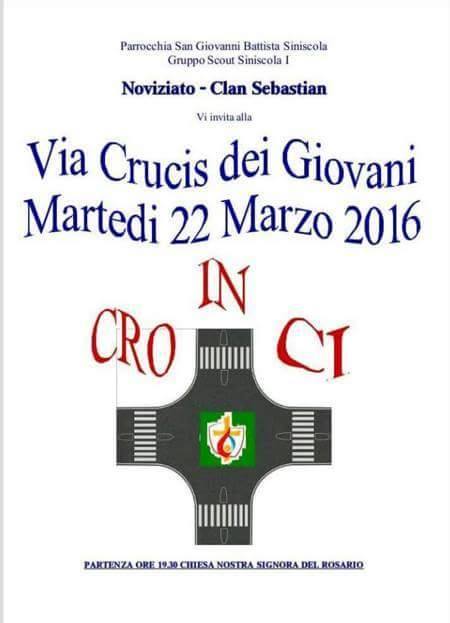 È in programma per questa sera, nell'ambito dei Riti della Settimana Santa, la Via Crucis dei giovani animata dal Gruppo Scout Siniscola I (Noviziato – Clan Sebastian). I fedeli partiranno alle 19.30 dalla chiesa del Rosario.