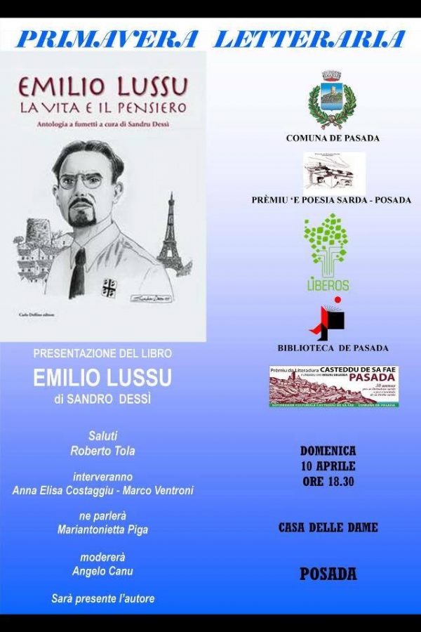 L'incontro previsto per questo pomeriggio (alle 18.30 presso la Casa delle Dame) ospiterà Sandro Dessì. L'autore presenterà la sua antologia bilingue a fumetti dal titolo “Emilio Lussu: la vita e il pensiero” edita da Carlo Delfino.