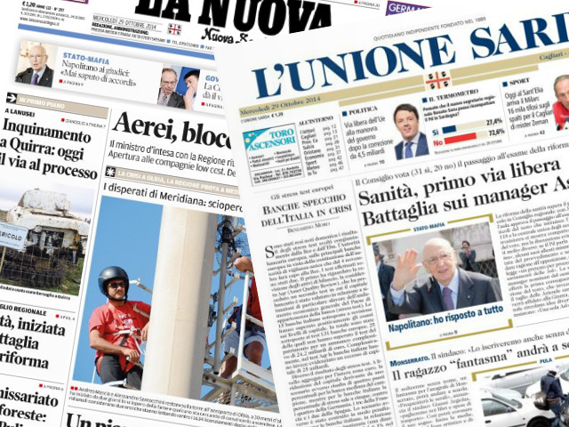 Sas editziones de oe non nos faghent mancare sas novas dae su fronte de su trasportu aèreu. A un'ala (La Nuova) sa mobilidade: «Aèreos, arreada sa “continuidade 2”. Su ministru, de acordu cun sa Regione, retirat su decretu: stop pro Bologna, Torinu, Verona, Nàpoli. Abertura a sas cumpangias a preju bassu. Deiana: sas risorsas serbint pro sas rotas internatzionales». A s'àtera s'isciòperu de su fàmene de sos traballadores Meridiana (La Nuova) e sas acusas a sa Regione (L'Unione): «A sas protestas de sos traballadores rèplicat s'assessore Massimo Deiana: “non tocat a nois a redatzionare sos pranos industriales de una cumpangia aèrea». In s'ìnteri dae Casteddu annùntziant medidas pro torrare a fàghere traballare «sos veteranos».