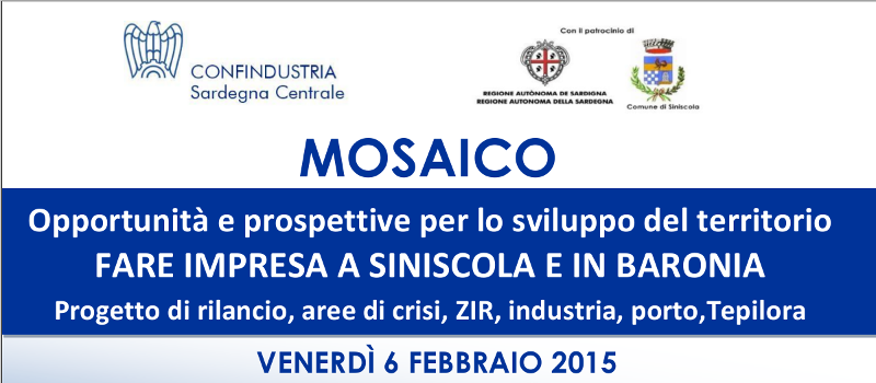 Progetto Mosaico, venerdì il convegno “Fare impresa a Siniscola e in Baronia” promosso da Confindustria