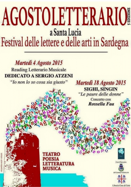 Prenderà il via questa sera alle 21.00 in piazza Venezia, nel borgo marino di Santa Lucia, la V edizione del festival “Agosto letterario”. L'evento culturale, nato grazie all'Associazione Paristorias (direttore artistico Toni Carta), è patrocinato dal Comune e si inserisce nel calendario dell'Estate Siniscolese.