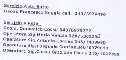 Di seguito i nominativi del personale coinvolto nel Piano di emergenza e i rispettivi numeri di telefono per eventuali segnalazioni durante l'orario d'ufficio: