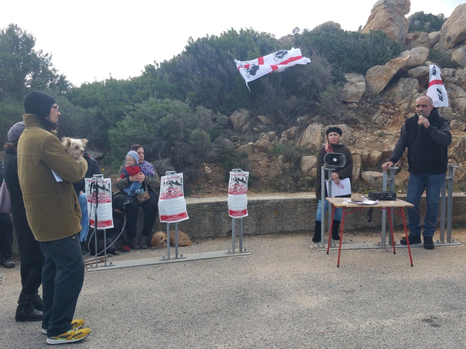 Successivamente all'affissione di uno striscione contenente la parola d'ordine «Gherra a sa gherra», diverse attiviste e attivisti, ad iniziare da Giuseppe Piras – uno degli organizzatori –, hanno preso il microfono per discutere di bilanci e prospettive della mobilitazione in corso e per affrontare le diverse questioni collegate alle attività militari in Sardegna. Hanno aderito al presidio A Foras, rete No Basi, Moras, Collettivo marxista/leninista di Nuoro, Movimento omosessuale sardo e S'Idea Libera.