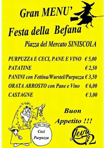 I coetanei del 1972, attivi sul fronte dell'organizzazione della prossima festa delle Grazie, promuovono per questo pomeriggio, in piazza del Mercato, la festa della Befana. Inizio alle 16.30 con il truccabimbi e i giochi animati da Mariagrazia e Nicoletta. Prevista la distribuzione di zucchero filato, popcorn, dolci e caramelle. Dalle 18.30 si terrà il “Richi Murru show”. Dalle 20.30, la musica del “Mr Groove Trio” accompagnerà la degustazione del gran menu della Befana con purpuza, ceci e altri piatti.