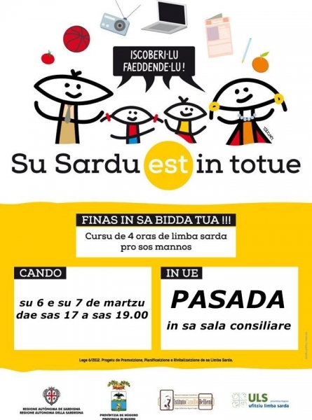 Giovedì 6 e venerdì 7 il corso per adulti “Su sardu est in totue” si svolgerà a Posada, presso la sala consiliare, dalle 17.00 alle 19.00 con il Dott. Angelo canu. Il progetto - che coinvolge diversi paesi - sta riscuotendo un notevole successo.
