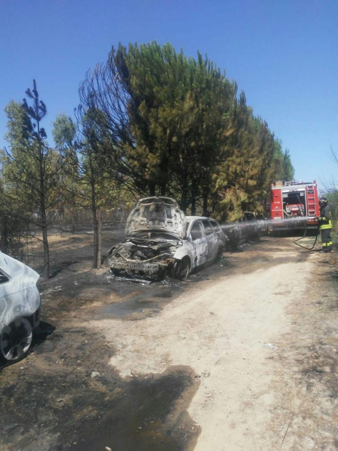 Domato incendio a La Caletta, attimi di preoccupazione. Interessate quattro auto e un oliveto