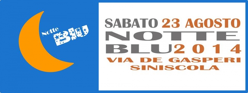 Sta per iniziare la Notte blu siniscolese, evento promosso e organizzato dai commercianti di via De Gasperi (con il patrocinio del Comune) che trasformerà il lungo rettilineo (una delle principali arterie cittadine) in uno spazio aperto all'insegna di spettacoli, musica, folklore, tradizioni, esposizioni e animazione È attesa la partecipazione di diversi cori polifonici, gruppi folk e tenores, ma non mancheranno i Mamutzones di Samugheo, il Dj set a cura de "I Saluti", e gli stand di gruppi e associazioni locali. Inoltre la sfida lanciata dalla macelleria Contu: insaccare 377 metri di salsiccia. La serata avrà inizio alle 20.00.