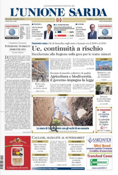 «Ue, continuidade in arriscu» tìtulat L'Unione paris a su meledu de su diretore Muroni chi, in s'editoriale suo, faeddat de interessu colletivu boghende·nde a campu unos cantos cuntzetos: «seguresa, frecuèntzia in sas tratas, costu bassu de sos billetes, variedade in sas destinatziones, rispetu de sas normativas natzionales e comunità rias». «Si faeddamus de mobilidade – sighit Muroni - artziet sa manu chie creet chi custu tipu de interessu colletivu potzat èssere persighidu cun sa polìtica adotada in sos ùrtimos chimbe annos dae sa Regione isbilantziada a favore de sos vetores traditzionales (Alitalia e Meridiana) e cun sa punna de iscoragiare, a bellu a bellu, sos raportos intre cumpangias a preju bassu e sotziedades de gestione de sos aeroportos». Una polìtica chi, a su chi narat Muroni, no at favorèssidu nen sos tzitadinos, nen sas cumpangias mannas.