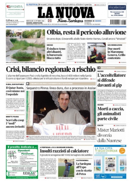 «Crisi, bilà ntziu regionale in arriscu» est su tìtulu printzipale in sa prima pà gina de La Nuova Sardegna oe in edìcola, chi sighit gasi: «S'assessore Paci: mìnimant sas intradas de Ires e Iva, bucu de 400 milliones in sa Sanidade». Si pro su chi pertocat Ires e Iva sa neghe est de sa crisi chi si rifletet in sa produtzione e in sos consumos, pro sa Sanidade Paci mustrat sa solutzione: «Amus a dèvere aorrare de prus e in antis de totu minimare sos gastos sanità rios».
