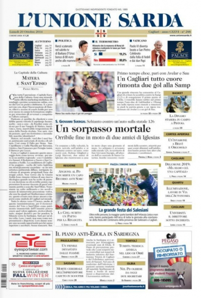 Comintzamus custa chida de primas pàginas cun novas chi non diamus chèrrere lèghere e bortare. Si L'Unione sarda nos contat de «Una colada mortale» a probe de Santu Giuanni Suèrgiu (duos giòvanos a caddu de una moto ant coladu una vetura e lassinende in s'asfaltu si sunt iscutos a un'àtera), La Nuova aberit cun s'intzidente de Tàtari chi at interessadu un'imprendidore 31enne: «Rutu dae sa moto, peruna ispera».