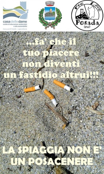 Posada - “Fa' che il tuo piacere non diventi un fastidio altrui. La spiaggia non è un posacenere”. È il messaggio della campagna sociale nata dalla sinergia tra CEAS “Casa delle Dame", Comune e Pro Loco. L'obiettivo è sensibilizzare i bagnanti al rispetto ambientale invitandoli a gettare i mozziconi delle sigarette negli appositi contenitori anzichè abbandonarli. Un piccolo gesto di civiltà che contribuisce a salvaguardare l'ecosistema: le cicche hanno un potere altamente inquinante e impiegano anni per degradarsi.