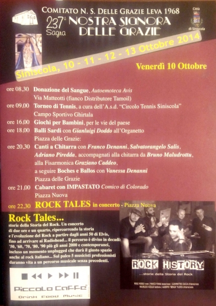 Si prospetta un ricco calendario per i festeggiamenti in onore di Nostra Signora delle Grazie. Da venerdì 10 sino a lunedì 13, i riti religiosi e civili a cura della Leva '68 si rinnoveranno all'insegna della tradizione. In allegato il programma dettagliato del 10 ottobre: